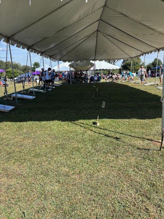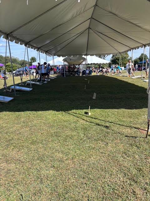 Thirty-five teams were assembled to play cornhole under huge tents donated by Allied